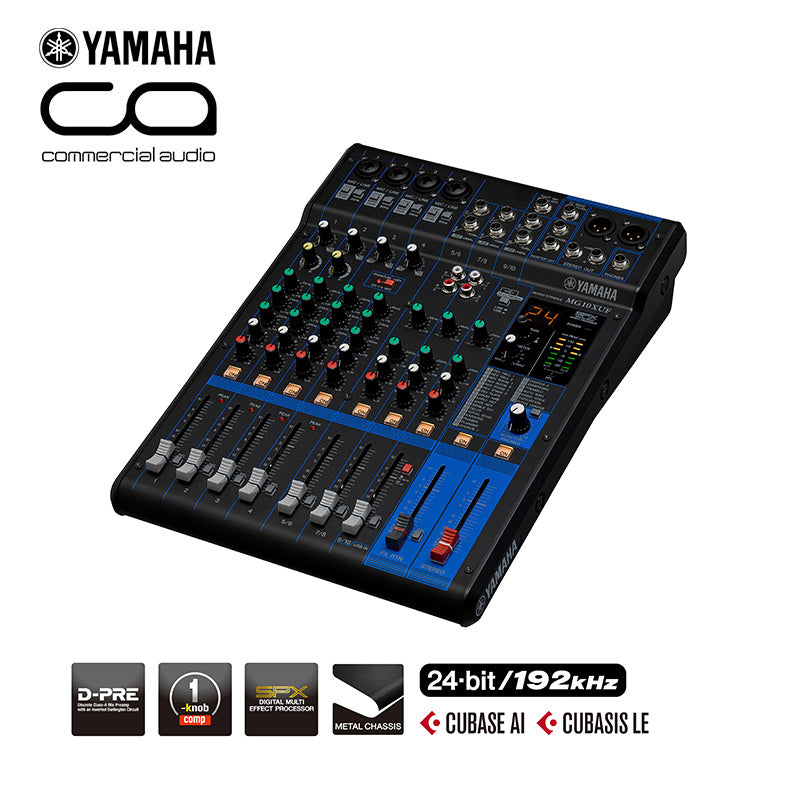 10-Channel Mixing Console: Max. 4 Mic / 10 Line Inputs (4 mono + 3 stereo) / 1 Stereo Bus / 1 AUX (incl. FX)