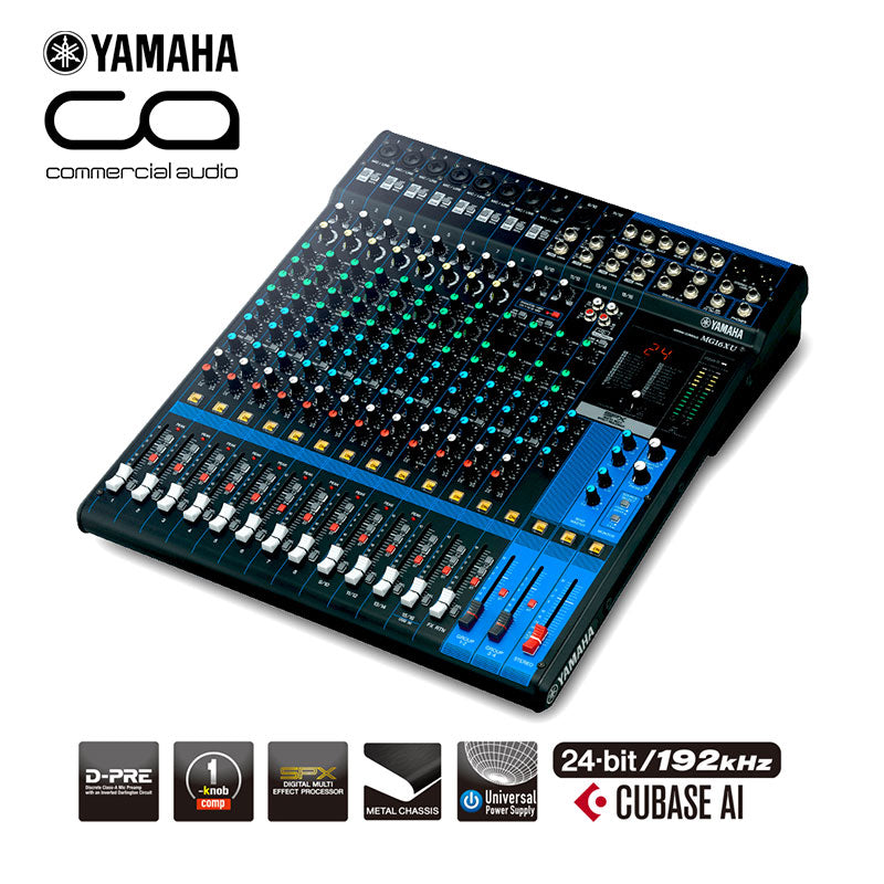 16-Channel Mixing Console: Max. 10 Mic / 16 Line Inputs (8 mono 4 stereo) / 4 GROUP Buses 1 Stereo Bus / 4 AUX (incl. FX)